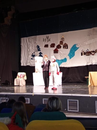 Новогодний праздник прошел очень хорошо, дети посмотрели спектакль Морозко в исполнении Болгарского Камерного театра под руководством Юлии Дихановой, давнего нашего партнера по этому мероприятию. Дед Мороз и Снегурочка прекрасно провели новогодние забавы с детьми. В начале мероприятия ученики выступили с новогодними художественными и музыкальними номерами, выступили: Хатидже Салиева фрагмент из балета “Щелкунчик” П.И.Чайковского соло игра на скрипке, Маша Градишки фрагмент балетная композиция “Щелкунчик”, Дана Богоевска стих-е М.Лермонтова, А.Маткаримова Пејоска отрывок из поэмы Н.Некрасова “Мороз, красный нос”, Никола Камчевки стих-е “Береза”.